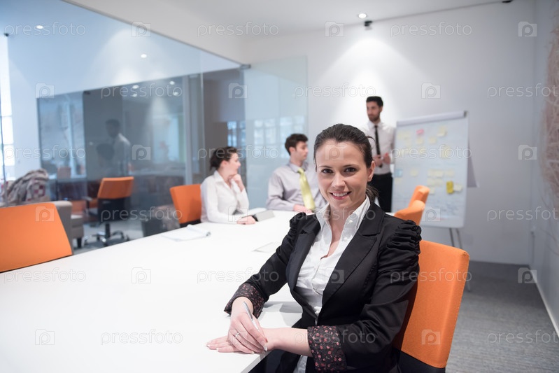 Молодая деловая женщина на заседании