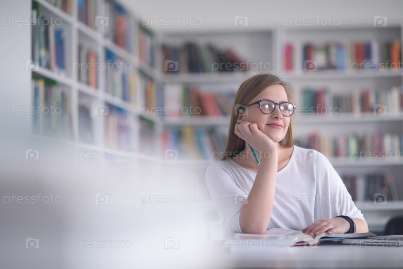 Студентка в школьной библиотеке
