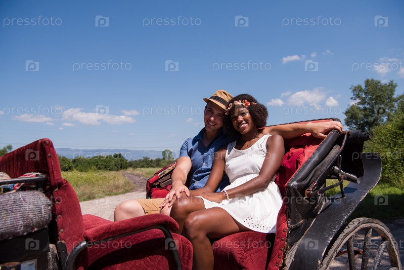 Пара сидит в конной упряжке