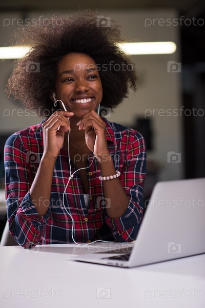 Молодая чернокожая женщина на своем рабочем месте в современном офисе