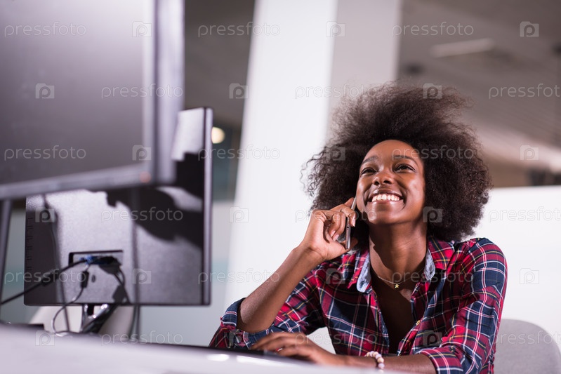 Молодая чернокожая женщина на своем рабочем месте