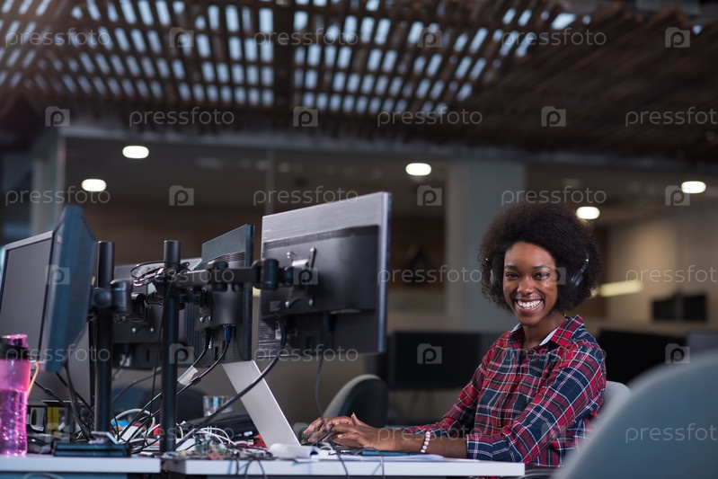 Молодая чернокожая женщина на своем рабочем месте