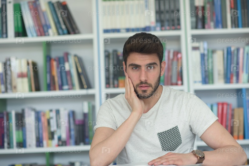 Студент в школьной библиотеке