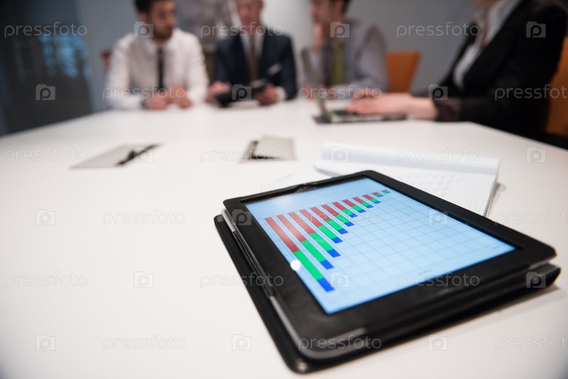 Тачпад с аналитическими документами на деловой встрече