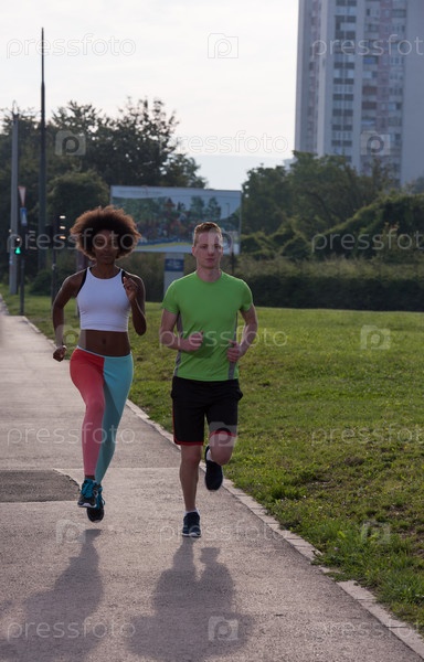 Многонациональная группа людей на пробежке