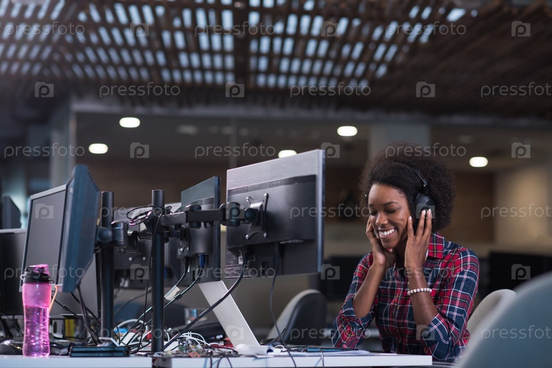 Счастливая девушка в офисе