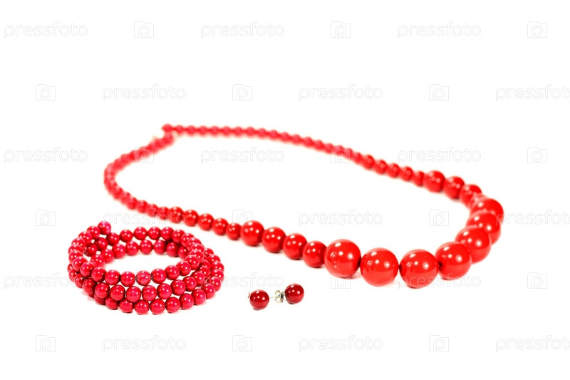 Ожерелье, браслет и серьги на белом фоне