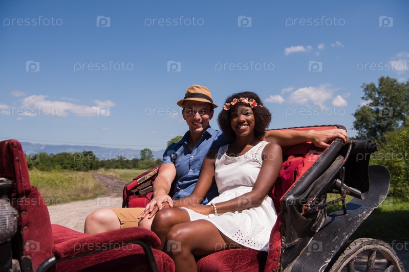 Пара сидит в конной упряжке