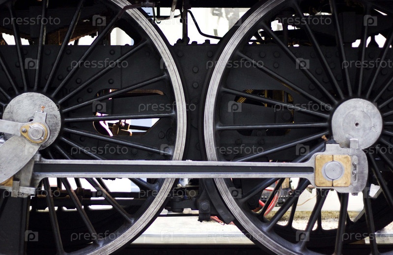 Колеса старинного поезда в техническом музее в Праге