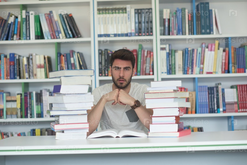 Студент в школьной библиотеке