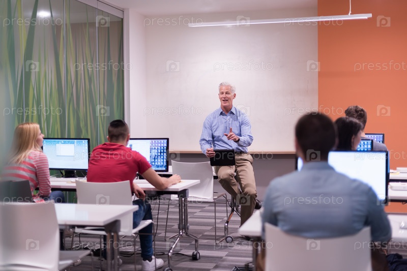 Преподаватель и студенты в компьютерном классе