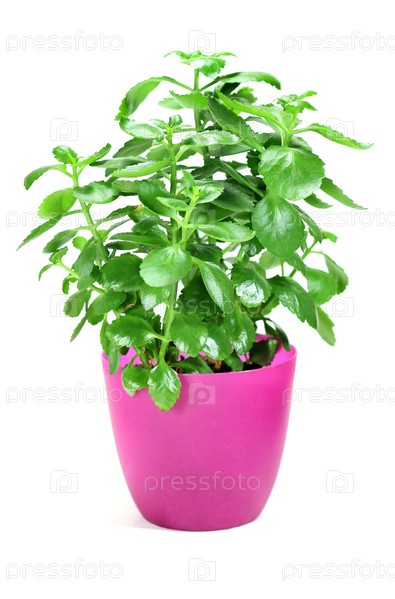 Зеленое растение в горшке на белом фоне