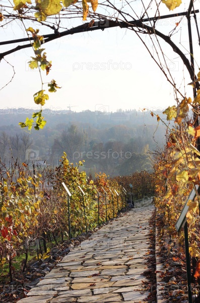 Мощеная тропинка в осеннем винограднике