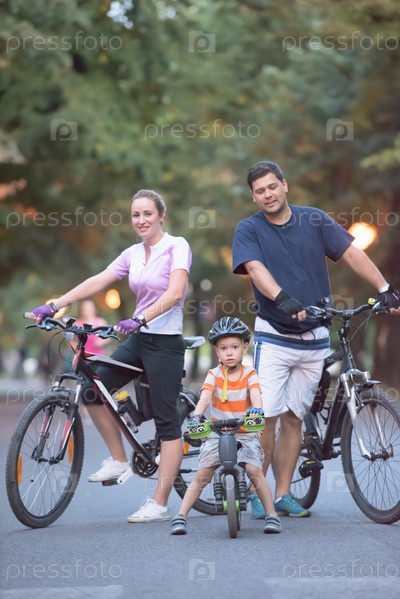 Молодая семья с велосипедами