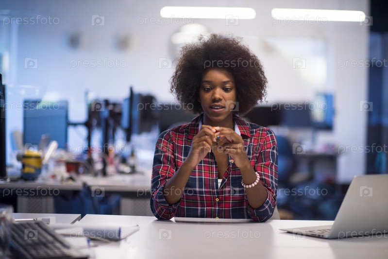 Молодая чернокожая женщина на своем рабочем месте