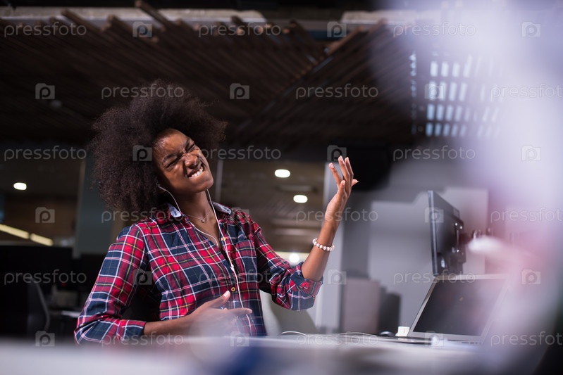 Молодая чернокожая женщина на своем рабочем месте