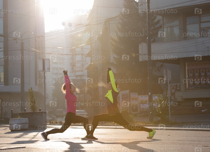 Пара разминается перед бегом