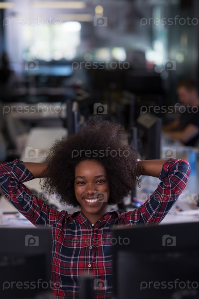 Молодая чернокожая женщина на своем рабочем месте