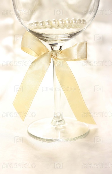 Бокал с лентой на светлом шелке