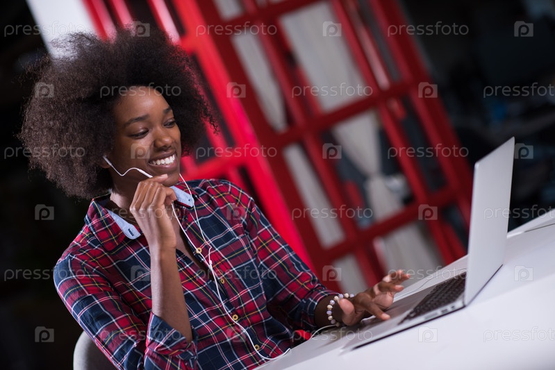 Молодая чернокожая женщина на своем рабочем месте