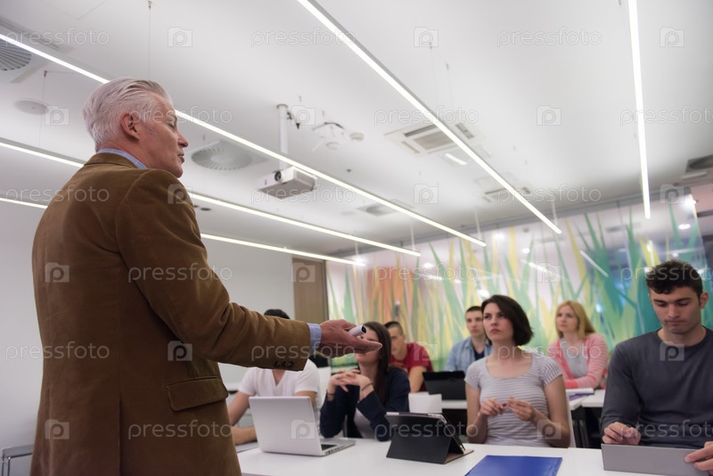 Преподаватель с группой студентов в классе