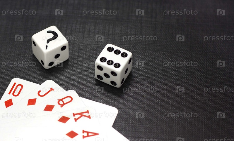 Игральные кости и карты на черном стоде