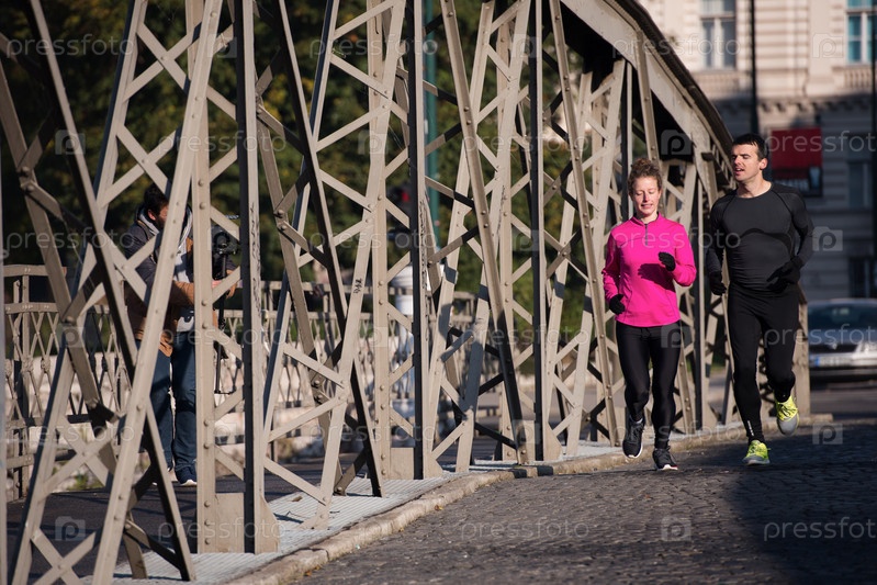 Молодая пара на пробежке
