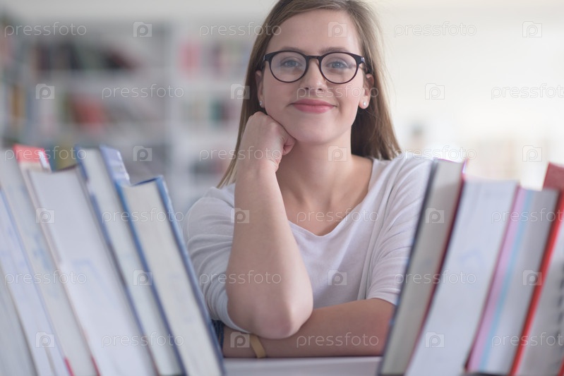 Студентка в школьной библиотеке