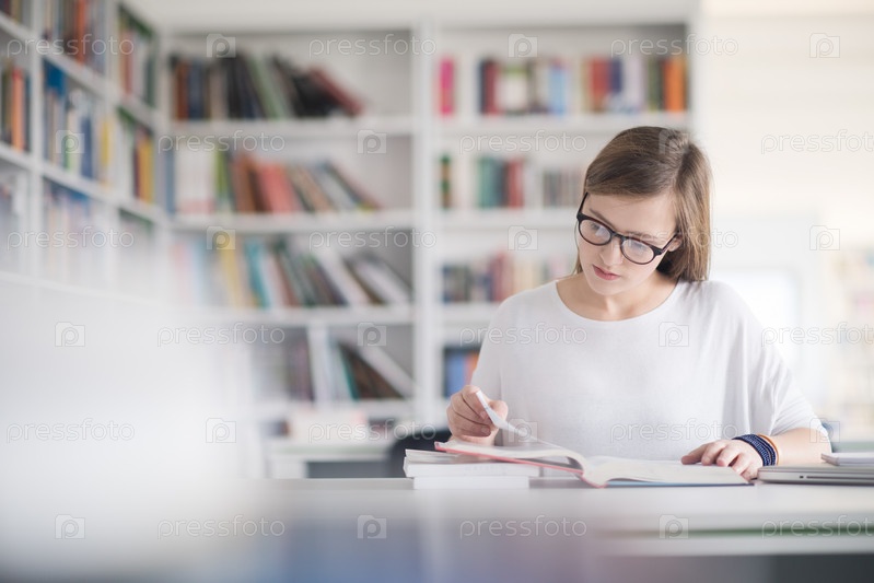 Студентка в школьной библиотеке