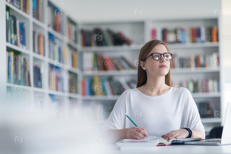Студентка в школьной библиотеке