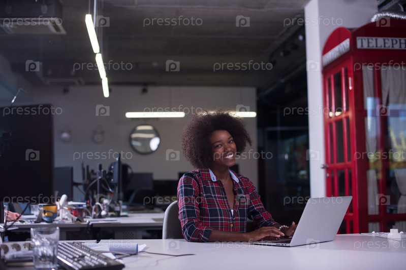 Молодая чернокожая женщина на своем рабочем месте