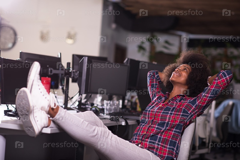 Молодая чернокожая женщина на своем рабочем месте