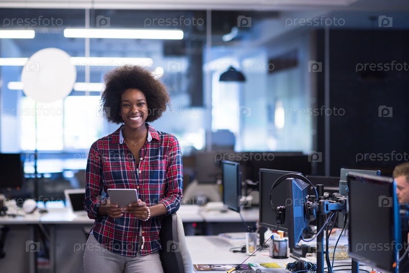 Молодая чернокожая женщина на своем рабочем месте