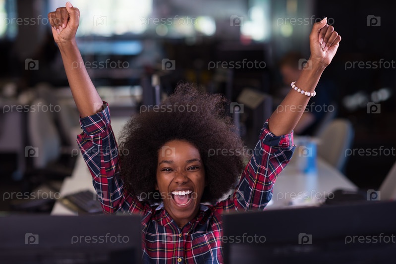 Счастливая девушка в офисе
