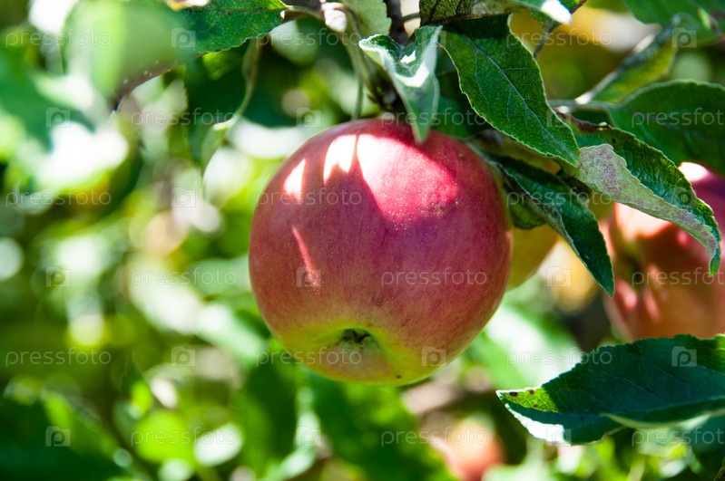 Красное яблоко на дереве