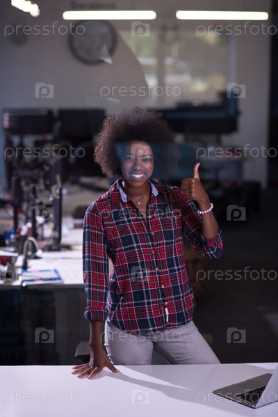 Молодая чернокожая женщина на своем рабочем месте