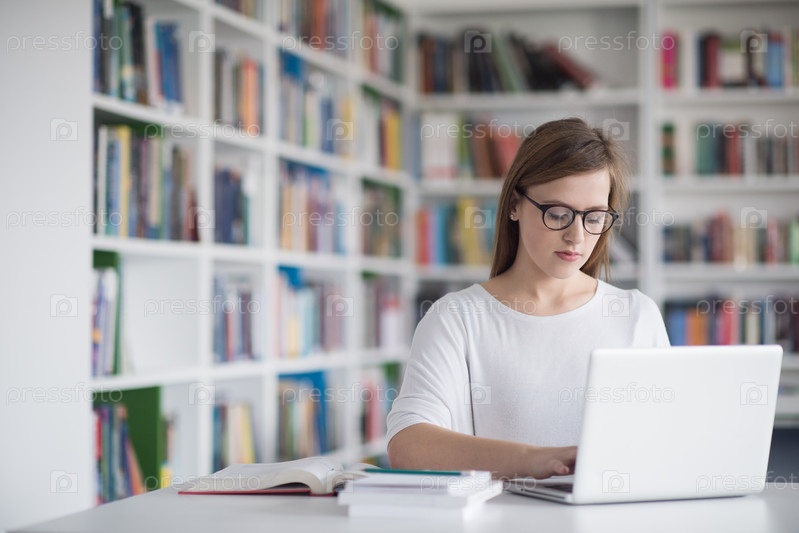 Студентка в школьной библиотеке