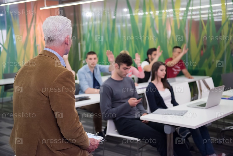 Преподаватель с группой студентов в классе