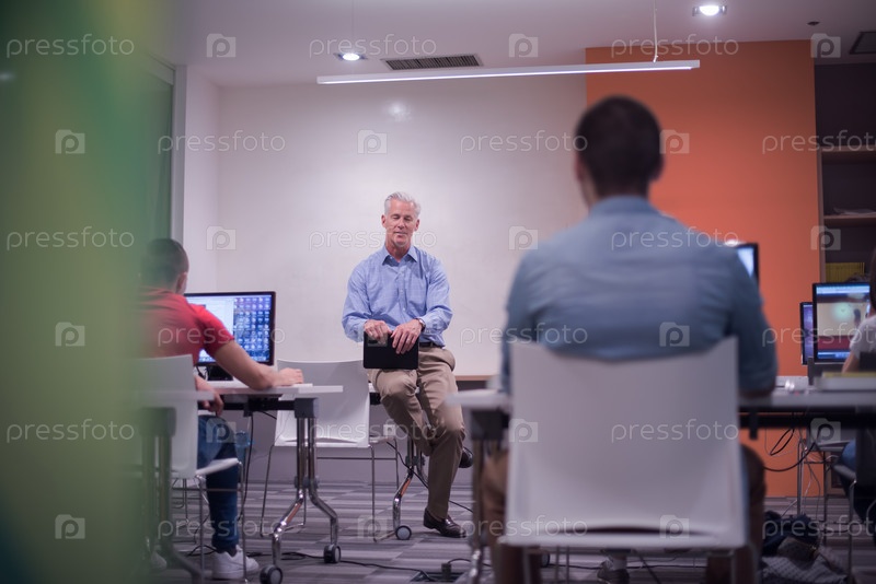 Преподаватель и студенты в компьютерном классе