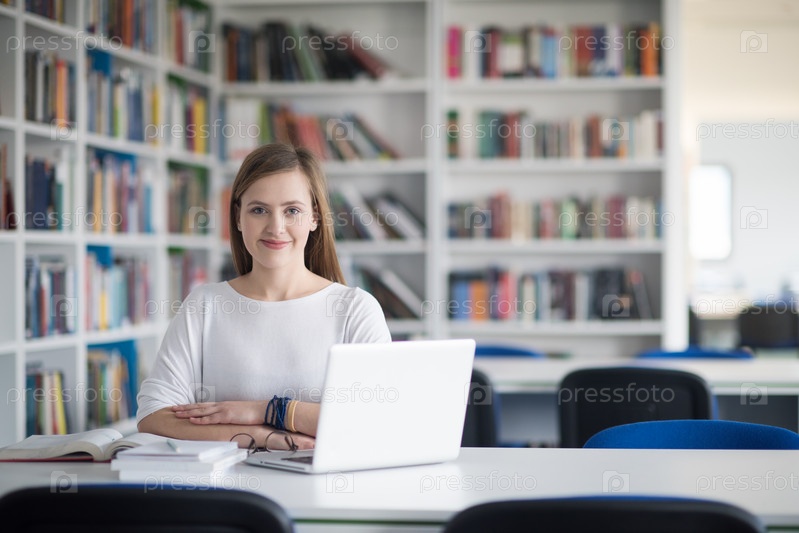 Студентка в школьной библиотеке