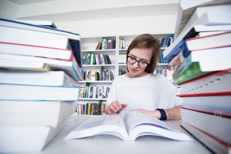 Студентка в школьной библиотеке