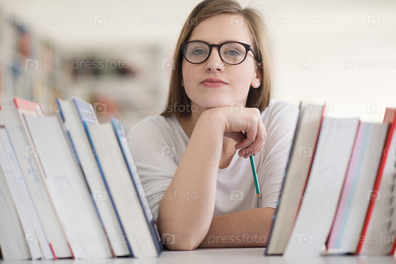 Студентка в школьной библиотеке