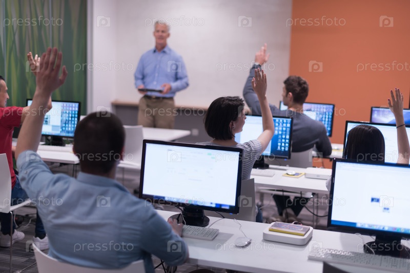 Преподаватель и студенты в компьютерном классе