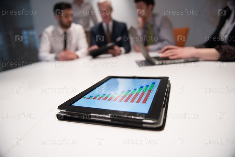 Тачпад с аналитическими документами на деловой встрече