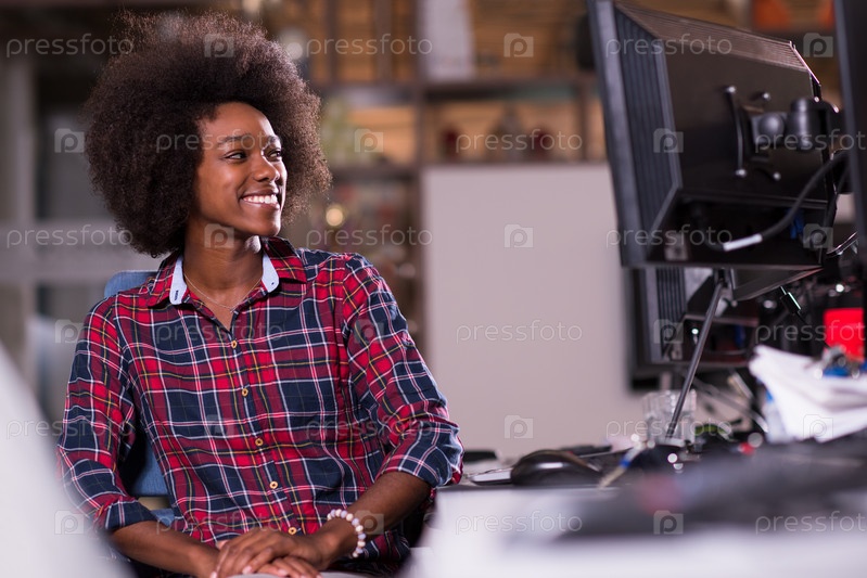 Молодая чернокожая женщина на своем рабочем месте
