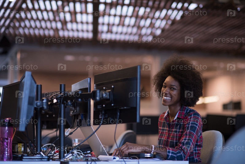 Молодая чернокожая женщина на своем рабочем месте