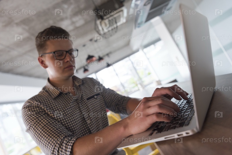 Молодой человек, работающий на ноутбуке