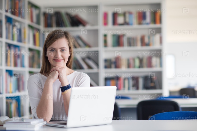 Студентка в школьной библиотеке