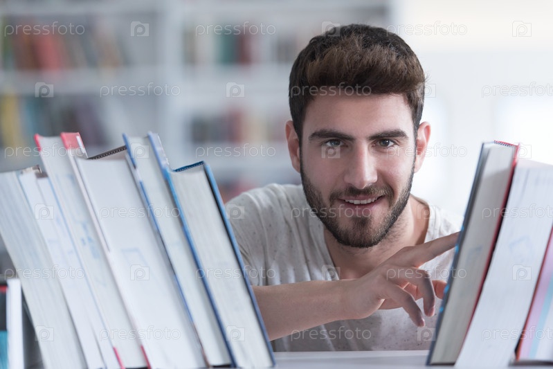 Студент в школьной библиотеке