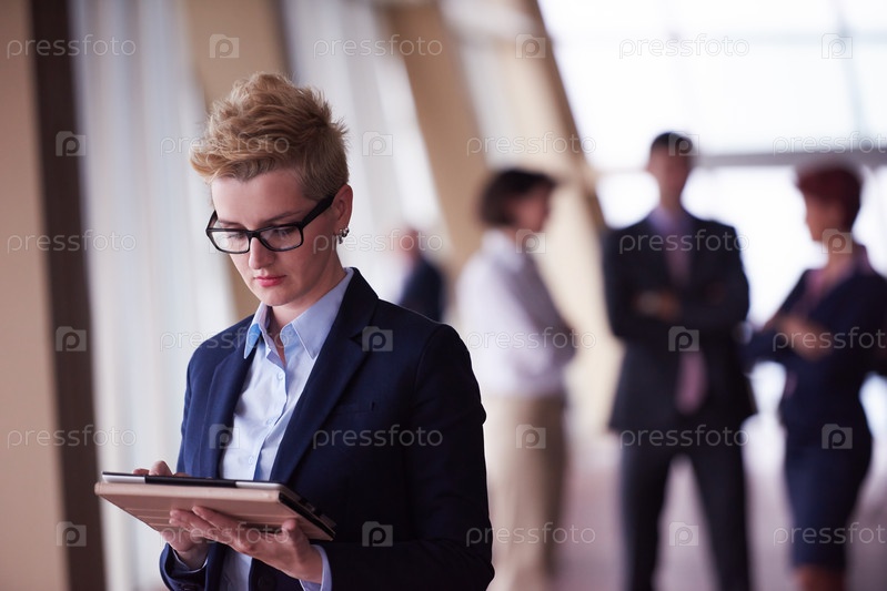 Деловая женщина в офисе с планшетом